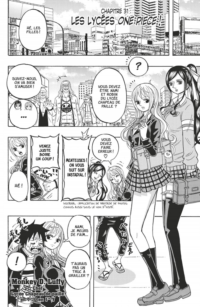 Quatre mini-histoires dans ce tome avec des thèmes assez divers. On suivra donc l’équipage en tant que lycéens, l’équipage version enfants qui aide une Robin toujours autant recherchée, Usopp qui doit d’évader d’Impel Down et enfin un Luffy amnésique qui doit rencontrer Big Mom.