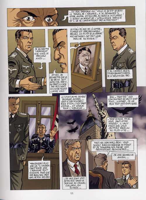 Günther, l’officier de l’Abwher qui apparaît dans le tome 2, devient le personnage central de cet album. Dès 1946, Günther se retrouvera embrigadé dans les nouveaux services secrets allemands, le réseau Gehlen, qui travaille pour le compte des américains, ce qui lui vaudra de croiser de nouveaux la route de son ancien adversaire, Klaus Dietrick, ex SS en mal de reconversion.