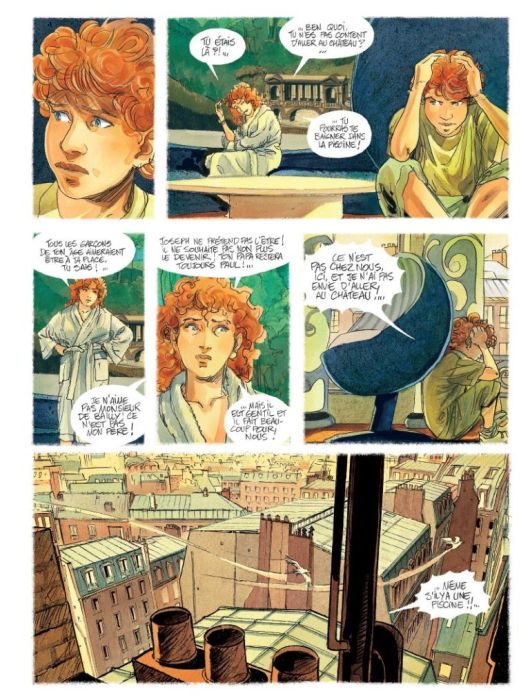 Joseph Béhé, au dessin, arrive à donner une ambiance bien particulière à cette BD. Un trait « crayonné »très agréable avec des belles teintes que j’apprécie assez bien. A noter aussi l’absence de cadrage lorsqu’on raconte la jeunesse de Daniel qui aide bien le lecteur à s’y retrouver.
