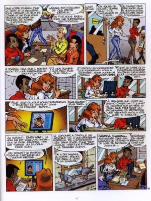 C’est à Bruno Di Sano de s’investir dans le dessin de la série lancée par Walthéry. Le choix est judicieux car les deux compères ont déjà travaillé ensemble. L’héritage n’est donc pas très lourd à reprendre …Di Sano s’en sort avec la mention très bien. Son dessin est plus rond que celui de ses prédécesseurs. Je m’en suis fait la remarque en feuilletant le livre la première fois. Mais on s’y fait bien vite. Pour ce qui est de dessiner les jolies formes de Rubine, pas de soucis avec le background du dessinateur.