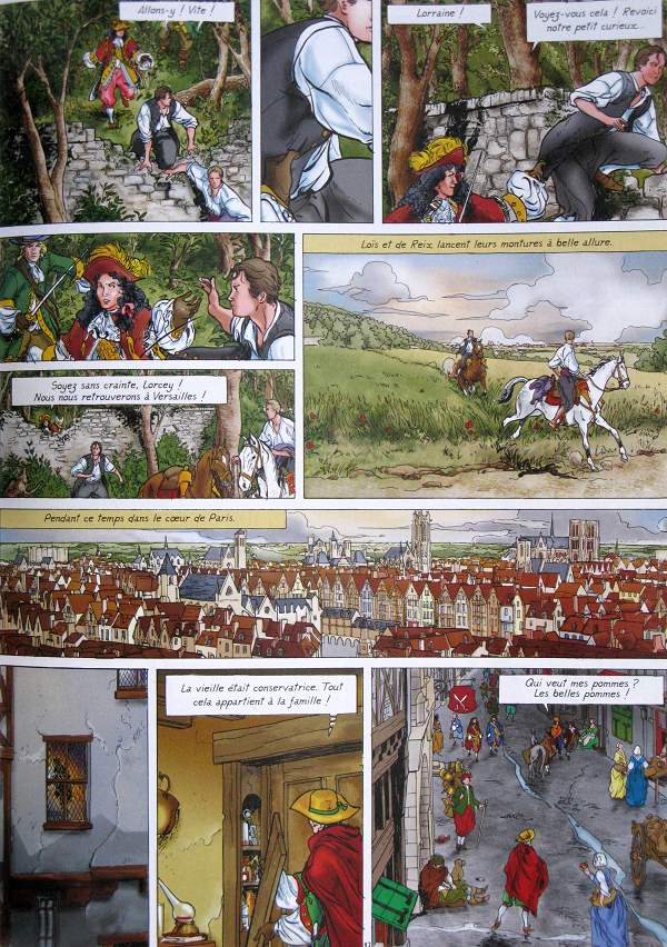Jacques Martin a passé la main depuis le troisième tome de la série à Patrick Weber pour le scénario qui s’est inspiré de faits réels pour faire rentrer le lecteur dans Versailles.