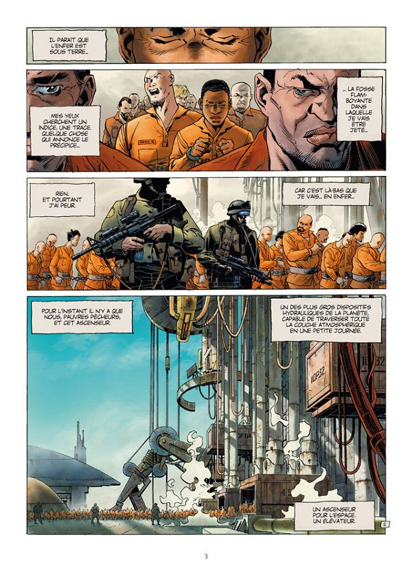 J’y ai pourtant cru quand j’ai pris l’ascenseur « to heaven » mais bien vite, j’ai compris qu’on jouait au space opéra de bas étages. Il vous faudra une fameuse dose de crédulité pour y croire ne fusse qu’ 1 % .Ce n’était peut être pas le but mais alors où est la dérision et l’humour pour montrer le second degré de cette parodie d’histoire spatiale. C’est surtout une BD pour les allumés du bocal à tendance gore, les autres la trouveront d’un ridicule proche du grand n’importe quoi. Je vous conseille de plutôt lire ou relire « Cryozone » .Vous y gagnerez en qualité.