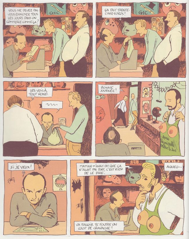Mon avis : et bien nous voila comme dans l’émission Strip Tease, une tranche de vie. Et bien avec un titre pareil on se demande si Rabaté n’a pas fait ca juste pour la blague de la 1ere case.. Perso ca m’a fait penser à l’album de Pigalle : Regards affligés sur la morne et pitoyable existence de Benjamin Trembley, personnage falot mais ô combien attachant  (illustré par Tardi)