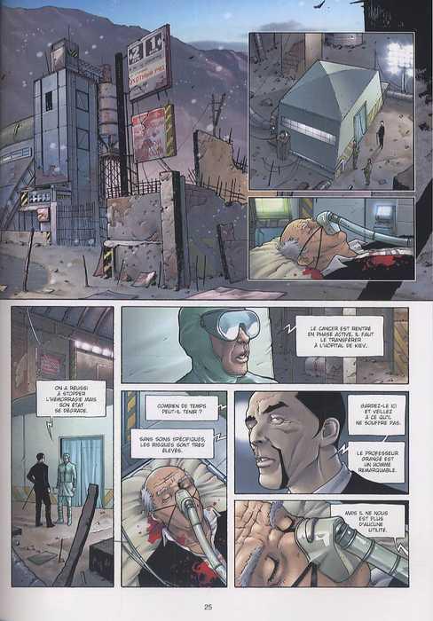Mon avis : Sixième et dernier tome de la série. Je dois bien avouer qu’au fil des épisodes, je me suis mis à douter de la capacité des auteurs à porter le lecteur jusqu’à la fin de l’histoire.Autant j’avais accroché au premier tome, autant au fil de l’histoire, j’ai progressivement décroché tant au niveau du scénario qui est alambiqué et en fin de compte assez prévisible, qu’au niveau du dessin qui me laisse franchement sur ma fin. J’en ai déjà parlé dans la chronique du tome précédent, j’ai des problèmes pour reconnaître les traits des personnages. Certains se ressemblent bien trop. Cela demande donc des allers-retours avec certaines pages, une lecture malaisée et franchement ennuyante. En plus, les couleurs froides ont fini par achever mon moral. C’est donc avec soulagement que j’ai terminé cette série. Je ne vous dis pas la fin mais c’est du prévu, déjà lu et pas innovant du tout. C’est une ficelle, que dis-, une corde grosse comme ça… Je comprends parfois pourquoi nous avons une surproduction dans l’univers de la BD. Allons, passons à autre chose…