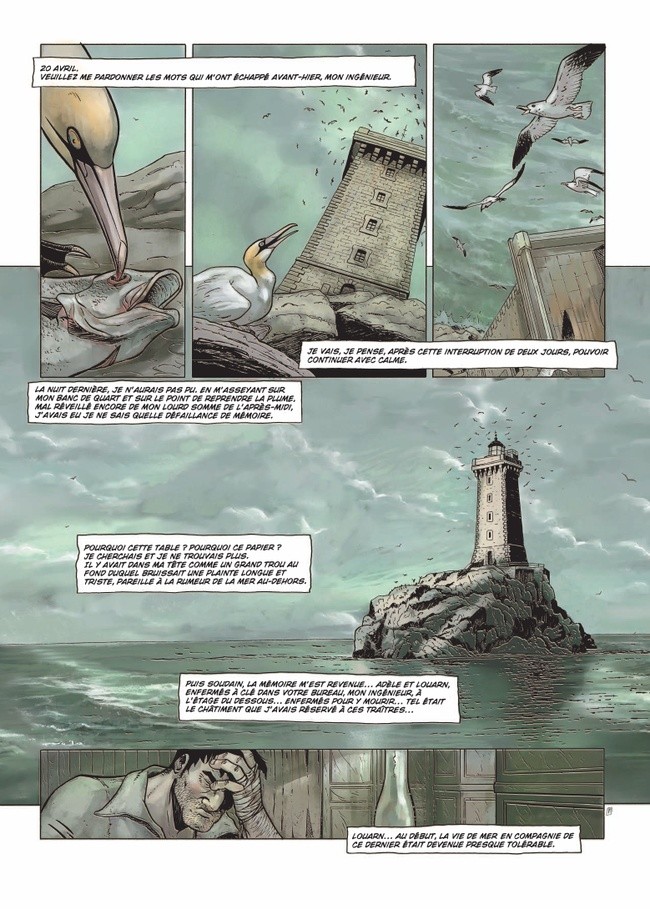 Mon avis : Le premier tome avait été une découverte, le second tome est une confirmation.L’adaptation du roman d’Anatole Le Braz est une réussite. Même si la fin est connue d’avance, le développement de l’histoire est fait de maîtresse manière tant au niveau du scénario et de son découpage. Le dessin de Sandro est précis et par moment très cinématographique dans la composition des cases. Les ambiances sont très bien rendues et en plus les couleurs sont très bien exécutées, à la hauteur du reste de l’ouvrage.Je ne peux que confirmer l’impression du premier tome. De plus, maintenant que les deux tomes sont sortis, les lecteurs de bonnes BDs vont pouvoir lire sans réticence la totalité de ce drame d’une seule traite et se plonger dans la Bretagne profonde et ses gardiens de phare.