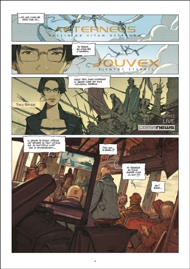 Dans le curriculum vitae de Thierry Labrosse, on trouve Moréa (Arleston).On est loin du fac simile avec ce Ab Irato. Le dessin est de visu nettement différent. Il est grosso modo plus élégant .Les couleurs sont plutôt ternes mais collent assez bien à cet univers pessimiste. On nous offre un monde intra muros futuriste de la ville de Montréal où les dies irae sont légions pour une population proche du casus belli. Une société où Multi sunt vocati, pauci vero electi pour se procurer le vaccin d’éternité. Dans cette anticipation, quatre personnages se croisent, ils sont pour le moment assez attachants pour trois d’entre eux et inquiétante pour la dernière. Pas mal d’action et de rythme pour ce premier tome malheureusement un peu série B par moment. In fine, un album agréable à lire grâce aux dialogues efficaces (et sans chichi) .Ce sera avec plaisir que je lirai la suite donc pas de liberate me ex inferis pour cet album.