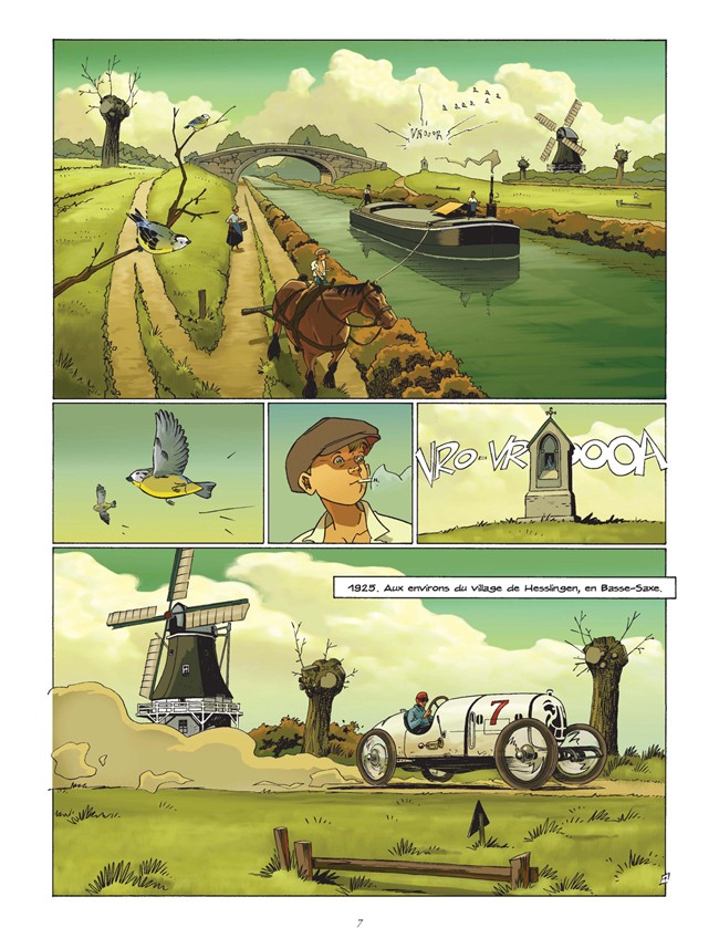 Autant le dire directement, j’ai vraiment bien aimé cet album qui a le mérite de nous replonger dans un phénomène de société de l’époque (les courses automobiles déplaçaient déjà à l’époque des foules énormes, près de 300.000 personnes à un Grand Prix au Nürburgring), dans l’ambiance qui y régnait mais aussi la montée du nazisme. Cette période de l’Histoire a été trop vite effacée de la mémoire collective. L’album permet de se rappeler de circuits aujourd’hui disparus ou tombés dans l’anonymat : Avus près de Berlin, l’ancien Nürburgring, le circuit au 170 virages et 22 kilomètres, Montlhéry près de Paris, Pescara en Italie. C’est aussi un hommage à de jeunes pilotes « trompe la mort ».