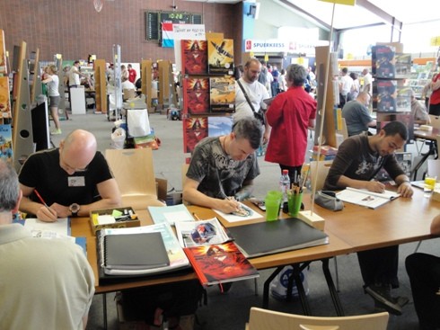 De retour au hall des sport .Ma première idée c’était de filer tout de suite chez Swolfs mais vu déjà le nombre de personnes devant moi, j’ai préféré switcher ailleurs. Mais cela ne m’empêche pas de vous proposer des exemples de dédicace de l’auteur de Durango et du Prince de la nuit.