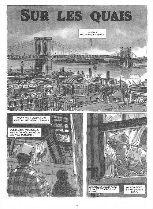 Je continue mon opération « écumage de mes dédicaces » .Je viens de lire « sur les quais », une adaptation d’un roman de Budd Schulberg dessinée par l’ami Georges Van Linthout . En lisant ce polar en noir et blanc, j’ai pensé à une phrase de Schuiten sur la technique du noir et blanc décrivant cet exercice comme très spécifique et demandant un travail des plus pointus. Et c’est vrai que via ce style , on peut juger du talent d’un dessinateur et Van Linthout s’en tire avec tous les honneurs .C’est tout simplement remarquable. En plus si vous avez l’occasion de le rencontrer lors d’un festival, c’est quelqu’un de très ouvert et affable .Un chouette gars en somme.