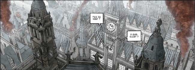 Oui une pelle pour enterrer vite cette BD au plus profond de ma bibliothèque, section erreur. Déjà que le début de cette BD m’a fait penser aux poupées russes, les matriochkas avec ces 3 tiroirs pour enfin arriver à ce qui nous intéresse, le début de la quête. Une fois arrivé là, c’est le bon moment, le mystère est pas mal distillé, on commence à sentir un petit enjeu et puis bardaf, une fois dans la jungle, les auteurs (aussi bien le dessin que le scénario) joue le burlesque avec des attitudes théâtrale voir guignolesque pour les différents protagonistes de cette pseudo vengeance. Si au moins c’était drôle, ce n’est même pas le cas. On frôle le grand n’importe quoi voir le ridicule. Bref, encore un 1800 de bas étage, cette collection commence à en foisonner.