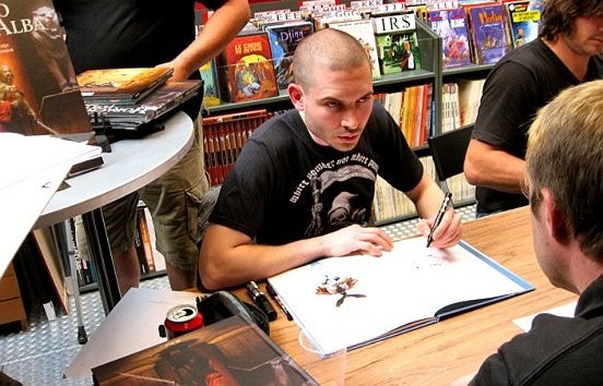 J’ai suivi un cursus scientifique jusqu’à mon bac, c’est probablement assez peu courant pour quelqu’un qui fait du dessin au final, mais bon! Mon bac S en poche j’ai entamé une fac de science et je me suis vite aperçu que cela ne me correspondait pas du tout et que ma vieille envie de dessiner me tenaillait de plus en plus. J’ai donc cherché des écoles d’art, monté un petit book, arrêté la fac après 3 mois de cours… et j’ai été admis en année préparatoire a l’école Pivaut a Nantes pour y suivre la formation BD/Illustration. Quatre années plus tard, diplômé avec les félicitations du jury, je me lance dans le début de la vie professionnelle. Malgré un parcours couronné de succès à l’école, hé ben dehors c’est vachement plus raide tout de suite, curieusement! Projets BD qui pédalent un peu dans la semoule etc… Mais je commence petit à petit à travailler en tant qu’illustrateur, avec une couv’ aux éditions Mnémos et une participation régulière au mag’ Science et Vie Junior. En Juin 2009, un an après ma sortie de l’école, mes efforts en BD sont récompensés par la signature d’Horacio d’Alba Tome1 chez 12Bis…