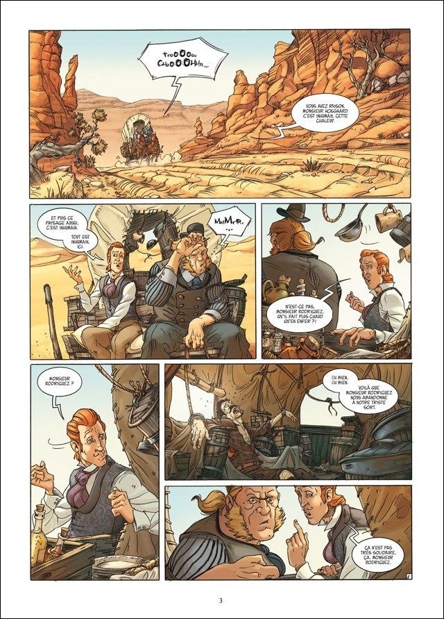 Vous aimez les westerns « spaghetti » ? Alors j’ai ce qu’il vous faut : l’hombre qui n’aimait pas les armes à feu. Avec le bueno, Byron Peck : homme intelligence à la grande éloquence. Avec la brute, Monsieur Hoggard : le costaud de service au vocabulaire succinct. Avec le méchant, Monolo Cruz : bandit mexicain surnommé la mierda . Et enfin la salope, Margot Garine : une jolie plante qui est pour la polygamie. Et j’oublie encore pretty face : Porteur de bagages à la gare d’Albuquerque. Tout ce petit monde se retrouve au plein milieu de nulle part pour nous jouer un vaudeville à l’humour assez décapant. Oh, ce n’est pas la franche rigolade mais on esquisse vite un petit sourire ironique grâce aux dialogues savoureux de Lupano. Pour accompagner ce règlement de compte à OK Corral , Paul Salomone nous dégaine une excellent première rafale digne des plus grands pistoleros. J’ai remarqué à coté de l’ambiance Western très réussie que les attitudes des fous de la gâchette étaient également très bien rendues. Bref, un excellent premier tome qui réussit son but premier : nous divertir.