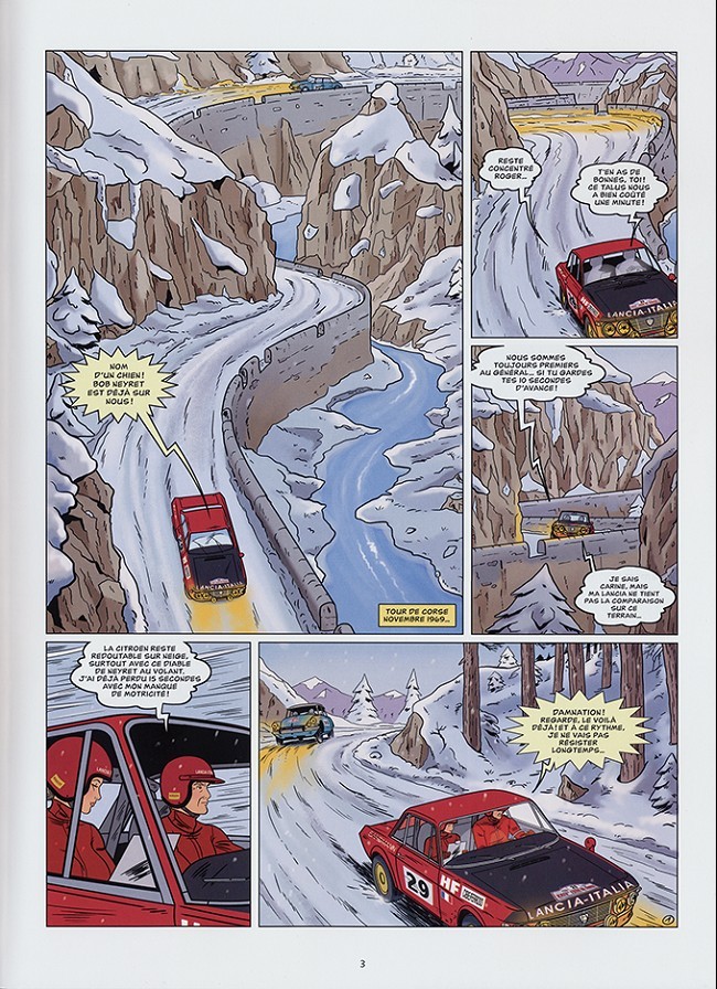 Mon avis : Après la collection « cockpit », c’est la collection « Calandre » qui est mise à l’honneur par les éditions Paquet. Il a été fait appel à un pilier de la maison, Emilio Van Der Zuiden, pour lancer une nouvelle série inspirée de la vie d’un vrai pilote de rallye, Bob Neyret. Il avait fait un coup marketing en 1970 en engageant, grâce à un sponsor, des équipages exclusivement féminins. Dans le monde très masculin du rallye, cela a fait le buzz…C’est cette histoire qui est racontée de façon romancée par Metapat. Il se permet à certains moments de s’éloigner quelque peu de la réalité historique pour la bonne marche de l’histoire. Emilio Van Der Zuiden nous montre, lui, son magnifique coup de crayon. Les jolies carrosseries, tant automobiles que féminines, ne manquent pas dans cet opuset rivalisent entre elles. C’est un régal pour l’œil. Le scénario recèle une histoire bien charpentée qui, sans atteindre les sommets, ravira sans problèmes les fans d’une série telle que Michel Vaillant. Cet ouvrage devrait rapidement trouver son public vu la qualité du travail proposé. Paquet continue ainsi sa diversification à travers des séries dites de « niche ». Bien vu !