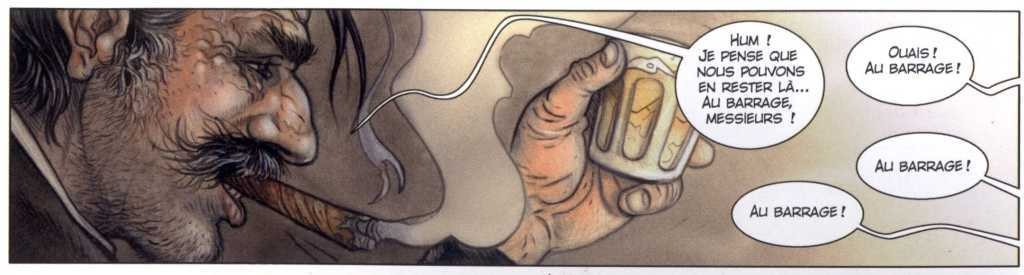 Le projet de construction du barrage avance à marche forcée et s’en suit des accidents suspects dus à la fatigue, la précipitation, l’improvisation, le manque de sécurité, le respect à marche forcée d’un planning trop optimiste des travaux, l’appat du gain… Sokal dessine toujours magnifiquement la nature hostile. Par moment, pris par sa verve, il nous livre des planches avec des cases plus grandes pour donner le maximum d’ampleur à son talent graphique. Un pur régal. Le monde des hommes est toujours dans les tons gris et sépia alors qu’apparaît de plus en plus la teinte bleue, celle du ciel, celle de l’espace occupé par l’aigle Kraa, celle de la clarté. Il s’agit d’un album de transition avant le dernier tome de ce triptyque mais l’auteur fait bien avancer le décor, place les éléments qui vont amener le drame et peut-être la rédemption…C’est la suite logique du premier tome. Sokal nous livre le meilleur de lui-même et ce serait dommage de passer à côté d’une telle série…