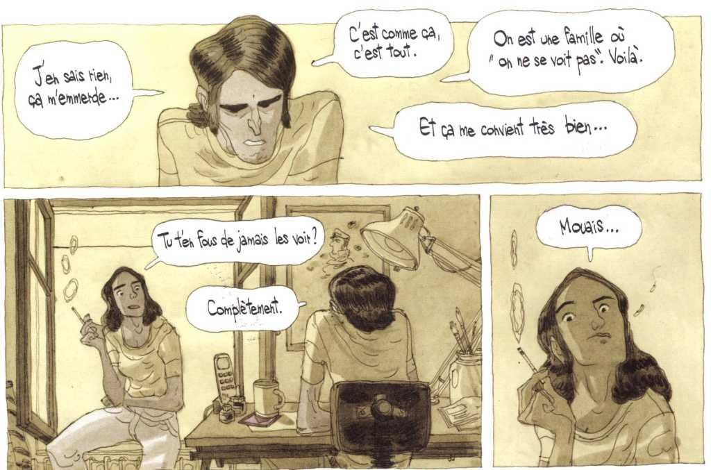 Reste le scénario…Un dessinateur de bandes dessinées est en mal d’inspiration et sa vie de famille s’en ressent. Sa compagne en a marre et le quitte. Invité au Portugal pour un festival de BD, il va reprendre contact avec des gens de sa famille, puisqu’il est français d’origine portugaise. De fil en aiguille, il va s’intéresser à l’histoire de sa famille et retrouver l’envie de la raconter, de travailler, de créer à nouveau. Pedrosa s’inspire ainsi de son expérience personnelle pour nourrir cet imposant album…C’est bien raconté mais par moment, je dois bien avouer que j’ai un peu décroché. Des dialogues en portugais, des dialogues en caractères de « fourmi » (vraiment petit à lire, faut-il les zapper car sans grande importance ?), et puis des petites longueurs sur 264 pages…A force de décrire des petites scènes de la vie quotidienne, cela devient parfois ennuyant…Bâillements…