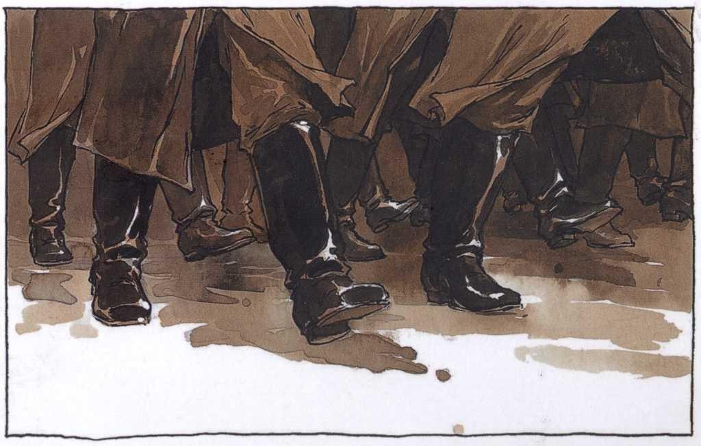 Pour en revenir à l’album en lui-même, le dessin de Guillaume Sorel est de type classique, sobre mais efficace dans le plus pur style du dessin réaliste. Ce qui attire l’œil, c’est la colorisation directe mais qui reste dans des tons proches du sépia, pas de couleurs éclatantes, mais aussi une large place au blanc. Un dessin et des couleurs tout en retenue…