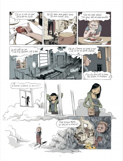 Si le scénario fait preuve d’un certain cachet et d’une singularité indiscutable, le dessin apporte d’avantage d’humour que d’originalité. Le fait est que l’humour qui se dégage de Shrimp vient essentiellement du trait et du découpage du dessinateur Mathieu Burniat. Le dessin est vif, léger, tout en mouvement et souplesse mais ressemble un peu trop au dessin de Manu Larcenet. Toutefois, quand on aime ce dernier, on cède volontiers cette ressemblance.
