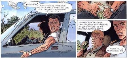 Mon avis : C’est un « one shot » d’Hermann au dessin et de Yves H., le fils d’Hermann, au scénario. Autant vous le dire de suite, c’est un drame, une histoire noire, très noire…C’est pas le genre de Bd qui vont vous esbaudir… Oh que non ! Ames sensibles s’en écarter…On se rend compte bien vite que ce petit vol dans une maison cossue va bien vite déraper et partir en eau de boudin. De la faute des apprentis voleurs, de la faute du propriétaire des lieux qui n’est pas n’importe qui non plus! Bien vite, le contrôle de la situation va échapper à leurs initiateurs et tout va basculer…