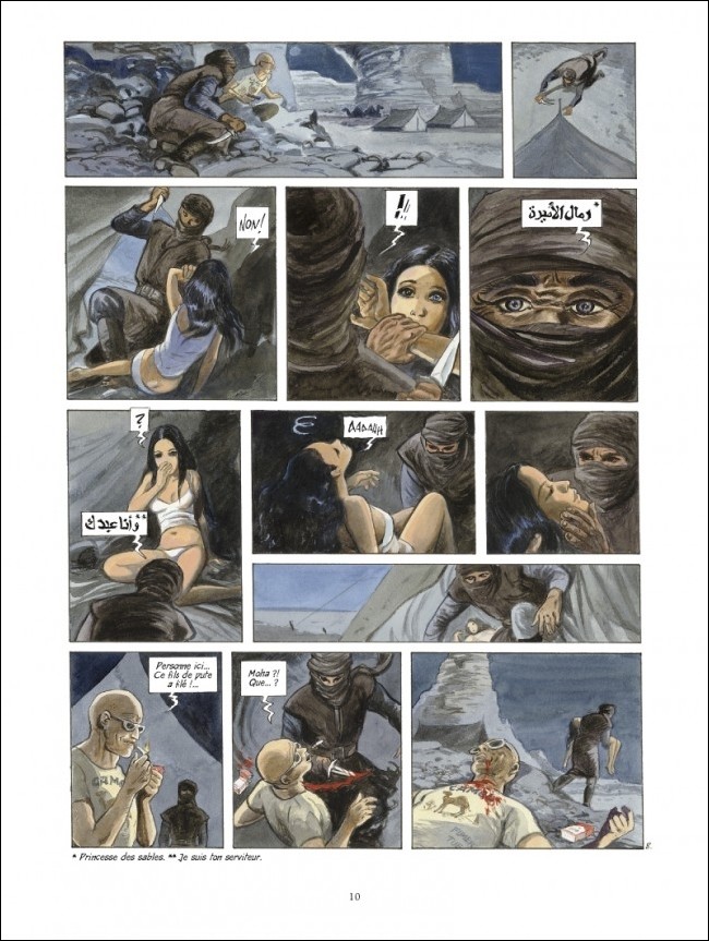 Ella Mahé, jeune restauratrice de manuscrits anciens, un peu rêveuse, un peu gaffeuse, pérégrine dans le désert en compagnie de Thomas Reilly, à la recherche de la couleur des dieux. Notre belle héroïne n’est pas insensible au charme du jeune homme, mais elle réalise que celui qu’elle prenait pour un égyptologue érudit s’est servi d’elle, et pire, qu’il lui a menti. Thomas Reilly n’est pas celui qu’il prétend être !