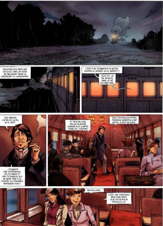 J’ai cru à un miracle au début de ce tome 3, cette série deviendrait elle enfin captivante ? L’attaque du train par les griffus adeptes du coté obscure et les révélations sur les forces qui habitent Darwin m’ont bien plu et puis…….combats, sang, tripes et puis quasiment plus rien d’autre. On aurait pu approfondir le combat intérieur du biologiste, son initiation à la maitriser, un peu plus de subtilité qu’une simple lutte entre deux clans de lycanthropes. C’est bien joli toute cette action mais j’attends plus d’une BD qu’une succession de scènes à l’hémoglobine dégoulinante. Visiblement les auteurs avaient envie de nous présenter les monstres en pleine action. Dommage d’avoir oublié l’once d’empathie nécessaire pour que le lecteur se sente un peu plus concerner par cette histoire fantastique …une de plus dans la masse de sorties actuelles mais ces carnets sont vraiment trop superficiels pour sortir du lot. Il y a moyen de trouver nettement mieux, c’est une certitude.
