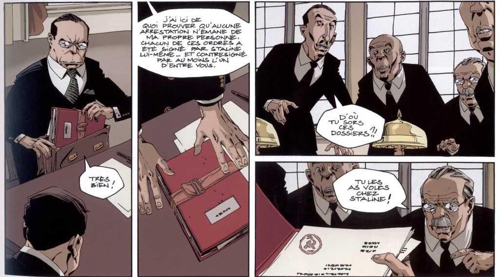 Les intrigues ouvrent ce nouvel album. On y voit également les préparatifs des funérailles qui se feront en grandes pompes…tellement grandes que des bavures vont avoir lieu. La faute à la paranoïa ambiante, la peur des mouvements de foule incontrôlés, de la révolte du petit peuple…Les enfants de Staline sont les premiers rebelles du régime, il faut les garder sous contrôle…Les camarades vont s’entredéchirer pour le pouvoir…Beria contre Khrouchtchev…Malheur au vaincu !…