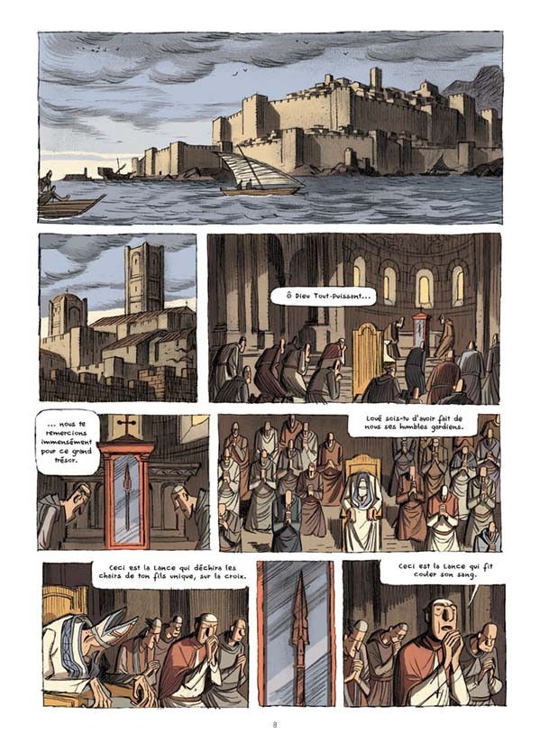 Cette bande dessinée est pour le moins atypique. Dans ce déluge de productions ayant pour décors les croisades, Lorenzo Chiavini a choisi de prendre le contre pied de l’action. Ici point de batailles homériques, point de décors grandioses, seulement des hommes submergés par les doutes ou dépassés par des destins trop grands pour eux. Les deux histoires sont montées en parallèles. L’auteur renvoie dos à dos les religions. Pas de parti pris.