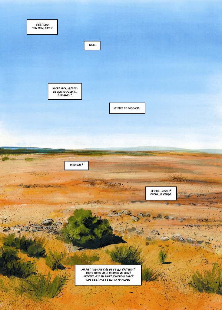 « Si vous voulez vraiment prendre conscience de votre insignifiance cosmique et existentielle, allez au coeur de l’Australie, vous en aurez la révélation immédiate et ça vous mettra K-O ! » Douglas Kennedy. Tout est dit !