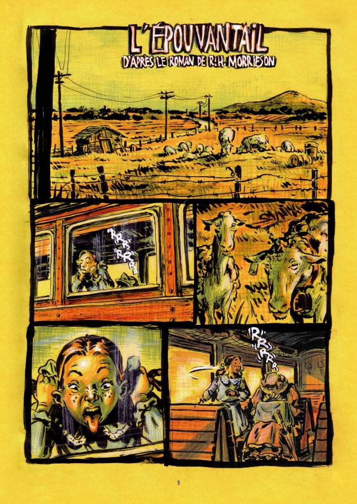 Voilà bien une BD qui ne vous laissera pas indifférent. Il y a tout d’abord ce jaune d’œuf omniprésent. On a l’impression d’être dans un cauchemar permanent surtout qu’on n’arrête pas de nous parler d’œuf au début de ce polar option étude sociale. Il y a aussi cette crasse qui envahit toutes les pages .Je me suis d’ailleurs lavé les mains après ma lecture. On est un peu dans la célèbre émission « Strip tease » avec les mêmes barakies ou alcolos de service mais dans les années 30 en Nouvelle-Zélande. Dany Boon en aurait fait certainement « Bienvenue chez les ploucs ! ». Tiens, en parlant de film, ce roman de Ronald Hugh Morrieson (quelqu’un l’a lu ?) a déjà été adapté au cinéma avec « The Scarecrow »(quelqu’un l’a vu ?).