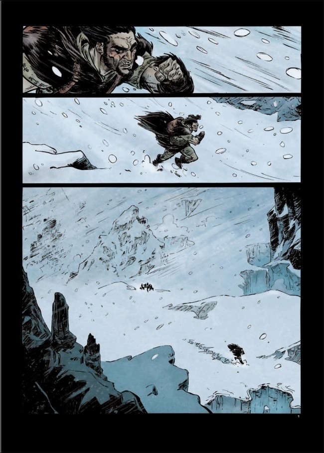 Tu parles de l’averse en fin d’album ? En fait, c’est plus un choix narratif, ce n’était pas écrit dans le scénario. Comme cette scène était plutôt conséquente niveau pages. Je me suis dit 13 pages en simple nuit éclairées au feu, ça va être redondant pour les yeux. Du coup j’ai décidé d’appuyer le moment fatidique de cet album en y faisant apparaître une grosse averse. En plus visuellement la pluie ça évoque plein de choses. Mais il faut lire l’album, car je vais en dévoiler trop sinon.