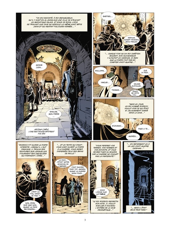 En plus, j’ai upgradé cet été mes connaissances pour l’histoire espagnole avec une croisière en Andalousie .J’ai remarqué également que la série « l’or et le sang » aide bien à comprendre le conflit qui tiraille l’Espagne avec le Maroc en 1915. Franchement, je suis donc dans des conditions idéales pour attaquer ce second opus de Curiosity Shop. Je remarque vite que la lecture devra être attentive car on a souvent deux degrés de lecture sur une même page. La première, la voix off et ensuite la deuxième, l’action proprement dite du dessin et des bulles. Au fil des pages, j’ai le sentiment que les informations seront très nombreuses à assimiler sans pour autant saisir complètement où veulent nous emmener les auteures très charmantes entre parenthèses .L’intrigue finit par se dévoiler, on chasse un trésor mythique, la table de Salomon à l’Indiana Jones avec moult péripéties. Mais je ne vais pas vous raconter des cracs, j’ai eu du mal à me captiver pour cette histoire, je ne sais pas trop pourquoi, peut être la densité du scénario, on change très vite d’un sujet à l’autre en jouant en plus avec les souvenirs des personnages. Pourtant, le dessin de Montse Martin est très dynamique, vivant et expressif. On sent bien qu’elle a travaillé pour l’animation. La scène finale avec le train est très révélatrice sur cette filiation. On y trouve aussi une certaine légèreté, une douceur qui mélangé à la complexité du scénario, donne une BD assez spécifique et unique .A vous de voir si elle vous est destinée. Visiblement, Samba est assez hermétique à ce genre de BD.