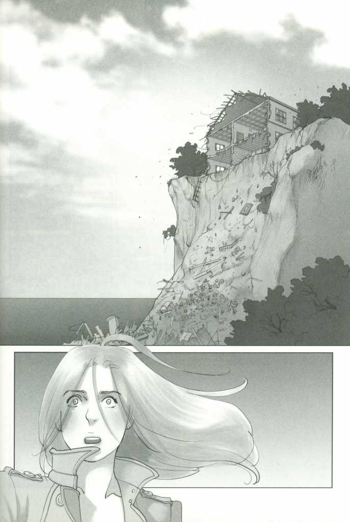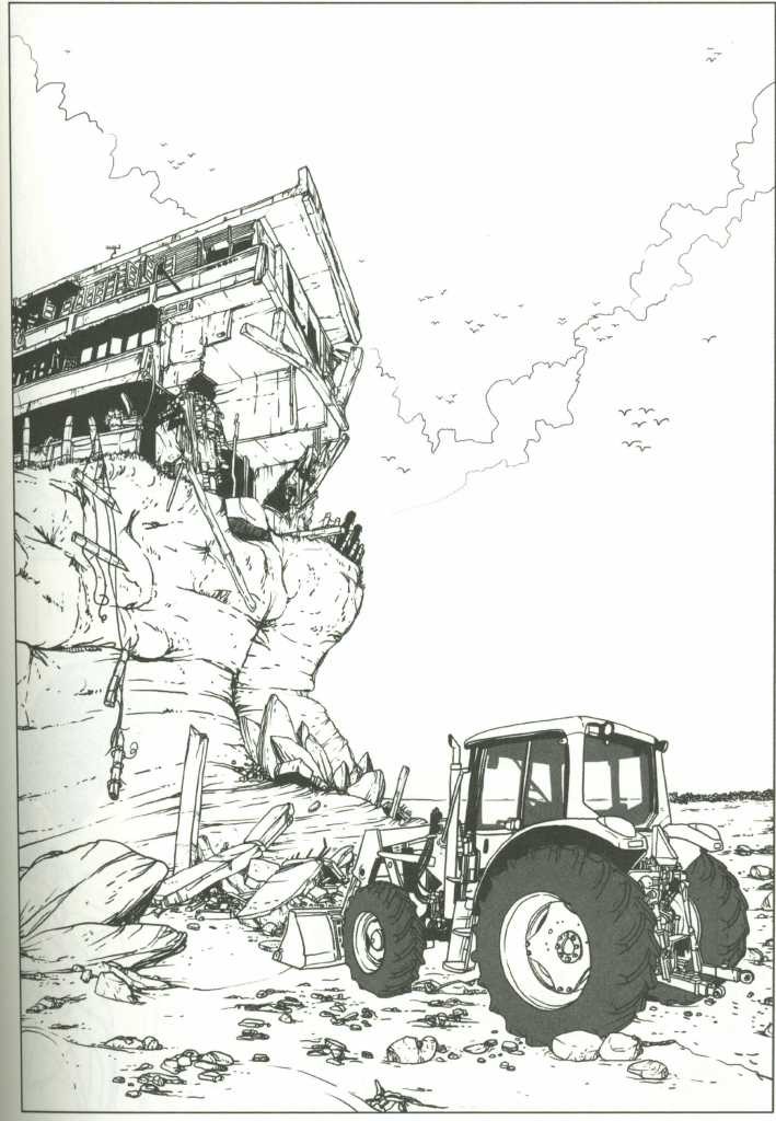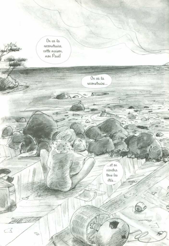 Toujours au niveau du scénario, cela part dans tous les sens mais parfois, il y a des chapitres qui se ressemblent vraiment fort. Faut-il abattre la maison ? Faut-il vendre le terrain ?Je trouve que certains auteurs ont franchement manqué d’imagination et n’ont pas osé aller en dehors des sentiers battus. J’ai bien aimé par contre les travaux de Fred Bernard et de Takahama. J’ai découvert un petit grain de folie, une idée scénaristique qui fait mouche. Taniguchi, encore lui, a fait tout à fait autre chose que les autres. Pour se distancier ou parce qu’il n’en a rien à faire du pitch de Benoît Sokal ? Il n’empêche que la maison détruite devient un phare toujours bien entier. C’est bien traité mais cela n’empêche que Taniguchi a triché un peu par rapport au concept. Globalement, je suis donc resté un peu sur ma réserve à propos du scénario car il y a des doublons, des manques d’audace et par moment un concept pas toujours respecté.