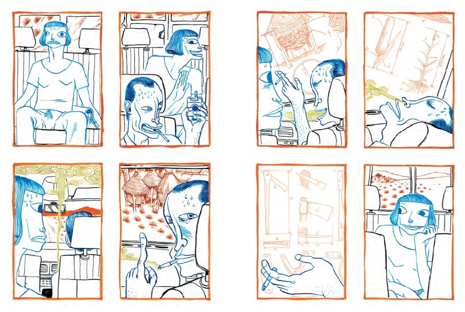 Néanmoins, il faut en toute objectivité reconnaître qu’il y a là un travail artistique indéniable. L’utilisation des couleurs est intéressante et sert directement la narration et les mises en scènes. Chaque personnage, chaque situation dans le temps et dans l’espace a son « code couleur » procurant ainsi une aide utile à la compréhension. Car si l’on comprend la situation d’une vignette à l’autre au coup par coup, il n’est pas aisé d’avoir une vue d’ensemble cohérente sans un décorticage systématique de chaque vignette.