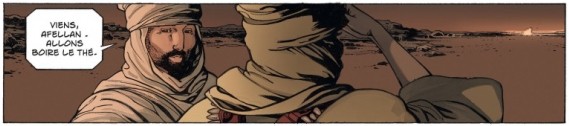 Le désert et les paysages sont superbement mis en valeur grâce notamment à une mise en couleur chaleureuse et lumineuse. Les ambiances et la grandeur du désert sont très bien restituées et l’on ressent toute la sagesse et la détermination qui émanent des regards des Touaregs à travers leurs chèches.