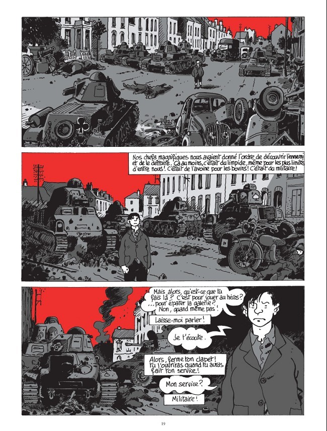 En plus, Tardi met beaucoup de lui-même dans ce nouveau projet qui devrait durer plusieurs tomes. C’est lui qui a poussé son père à raconter son histoire de façon chronologique et par le détail. Mais pris par le travail, d’autres projets, il le laisse de côté. Son père René Tardi décède en 1986. Vient enfin le moment, il y a peu de temps, où Jacques Tardi reprend en main le projet. Il se rend compte alors qu’il aurait pu poser beaucoup de questions à son père qui n’auront jamais de réponse. Pourquoi a-t-il occulté certains faits et mis en lumière d’autres? Jacques Tardi va essayer de compléter le récit par des recherches documentaires mais on sent que Tardi a des remords. Il a l’impression d’avoir raté en quelque sorte un rendez-vous avec son père par pudeur, manque de communication, à cause du non-dit, des silences qu’on n’ose interrompre.