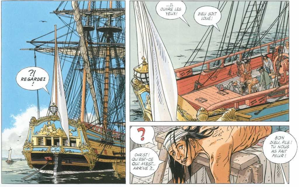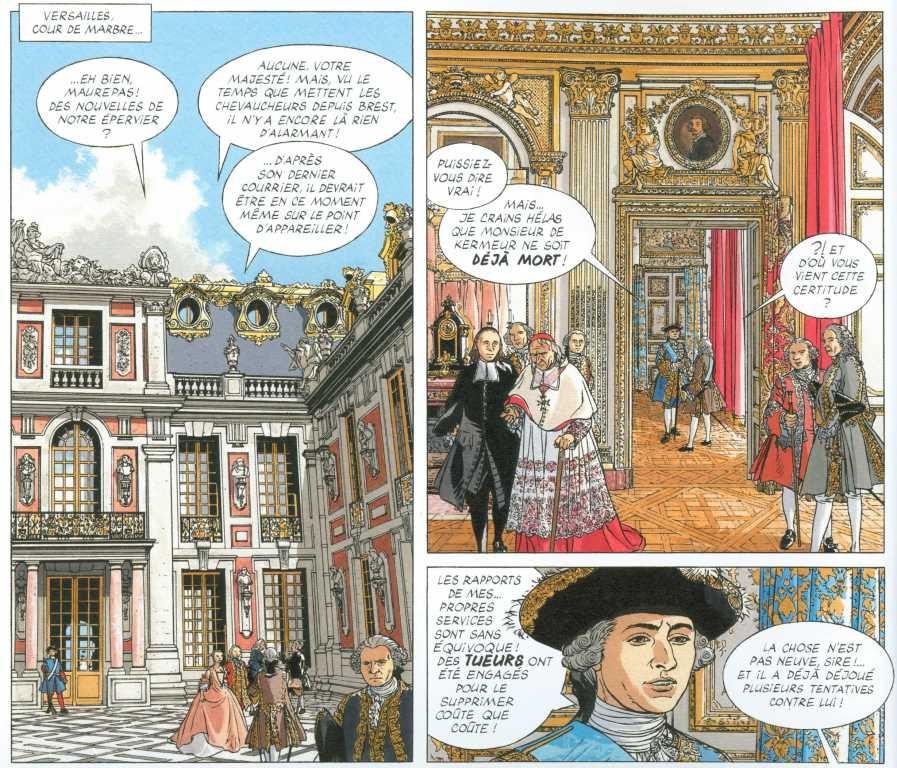 Au niveau du dessin, cela reste toujours aussi bien. Toujours autant de précisions dans le trait. Versailles, Brest, les bateaux et les gréements sont parfaitement rendus. En plus de cela, la couleur est extraordinaire pour rendre la splendeur de Versailles. C’est du beau travail graphique comme à l’accoutumée.