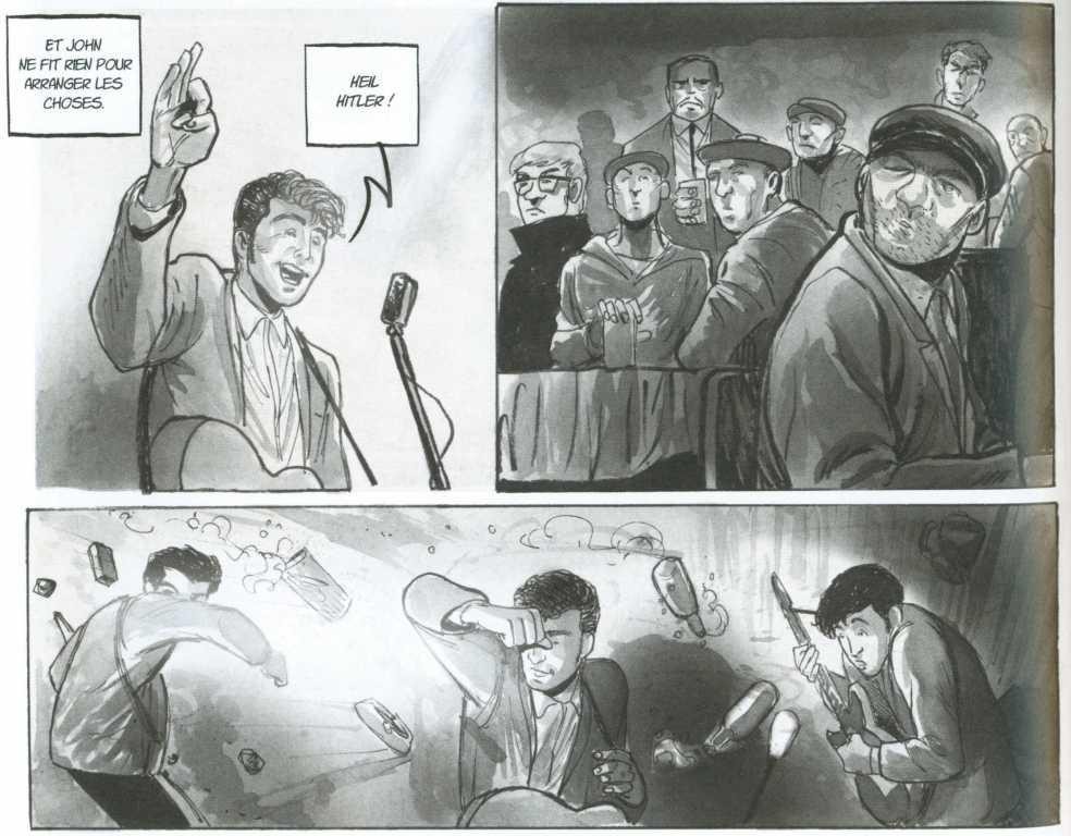 Mon avis : Cette histoire vraie mais romancée raconte le destin étonnant du premier manager des Beatles, Allan Williams. Gihef, dessinateur belge confirmé (Enchaînés, Haute sécurité,…), est le scénariste de cet album alors que le Lillois Damien Vanders (back to perdition, Welcome to hope,…) s’occupe du dessin. Gihef confirme ainsi qu’il se tourne de plus en plus vers le scénario (Mister Hollywood, Skipper,…).