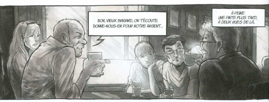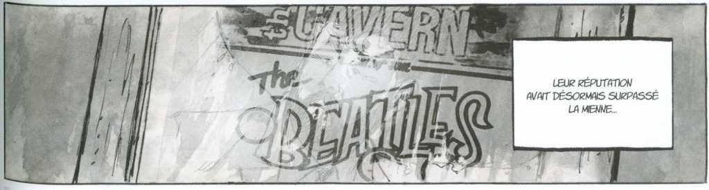 Au niveau du dessin, Vanders a réalisé un beau travail graphique, entre l’encre noire et la couleur sépia, sombre, qui rappelle beaucoup les photos d’époque. On se croit dans un film des années ’60 de la BBC avec ce grain de folie de l’époque du « singing Liverpool ». La ville est très bien rendue également. Les auteurs se sont très bien documentés pour nous offre un album remarquable et qui tient la route. A noter qu’en fin d’album, les auteurs nous proposent un « Met king Off », une annexe qui nous décrit le périple des auteurs à Liverpool sur les lieux de la légende.