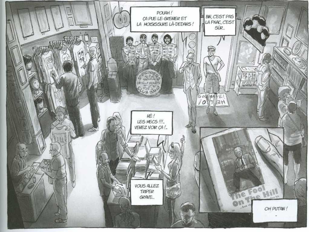 A la lecture de l’album, on sent directement que les auteurs sont des passionnés, des fans des « Fab’four » de Liverpool, les Beatles. Ils racontent cette histoire avec humour mais tout en veillant au respect des faits historiques. Ils se bornent à combler les vides en imaginant certaines scènes et en gardant ce caractère plausible de la narration. Le récit est enlevé, donne un sentiment de folie du moment mais aussi un sentiment de désenchantement dans le chef d’Allan Williams qui est conscient d’être passé à côté de quelque chose d’énorme. Maintenant, il gagne sa vie en racontant son aventure avec les Beatles, moyennant payement de quelques livres sterling et de moult verres dans les bars de Liverpool. Un destin un peu triste qu’on pourrait paraphraser par la chanson « The fool on the hill » des mêmes Beatles, un livre sur Allan Williams porte aussi ce nom.