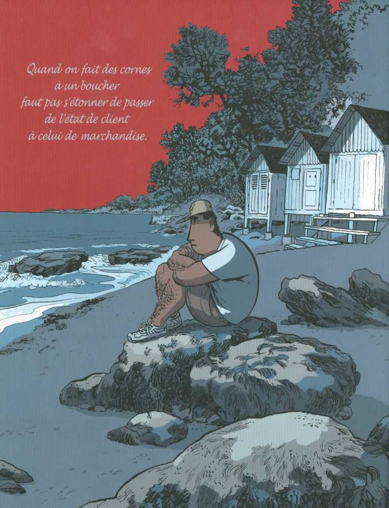 Résumé (de l’éditeur): Didier est boucher, amateur de bande dessinée et… cocu ! Cela lui bousille la vie. Sandrine, son épouse, le trompe avec leur meilleur ami, Éric. Cela fait au moins un an que cela dure, depuis les vacances passées. Il aime sa femme plus que tout, il est patient, mais il ne supporte plus ses mensonges et ne peut définitivement plus encadrer son ancien copain. Il décide donc de se venger. Et son idée, il va la trouver dans un classique de la bande dessinée…