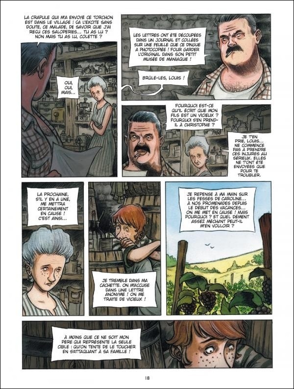 -Pas vraiment, on est en milieu rurale et on a donc droit à des surnoms à coucher par terre pour décrire certaines sommités locales .Tu verras, le rythme est plutôt lent, les auteurs prennent le temps de faire monter la pression petit à petit, à décrire les différents protagonistes de cette vilaine rancœur pour enfin dévoiler le fameux « secret ».