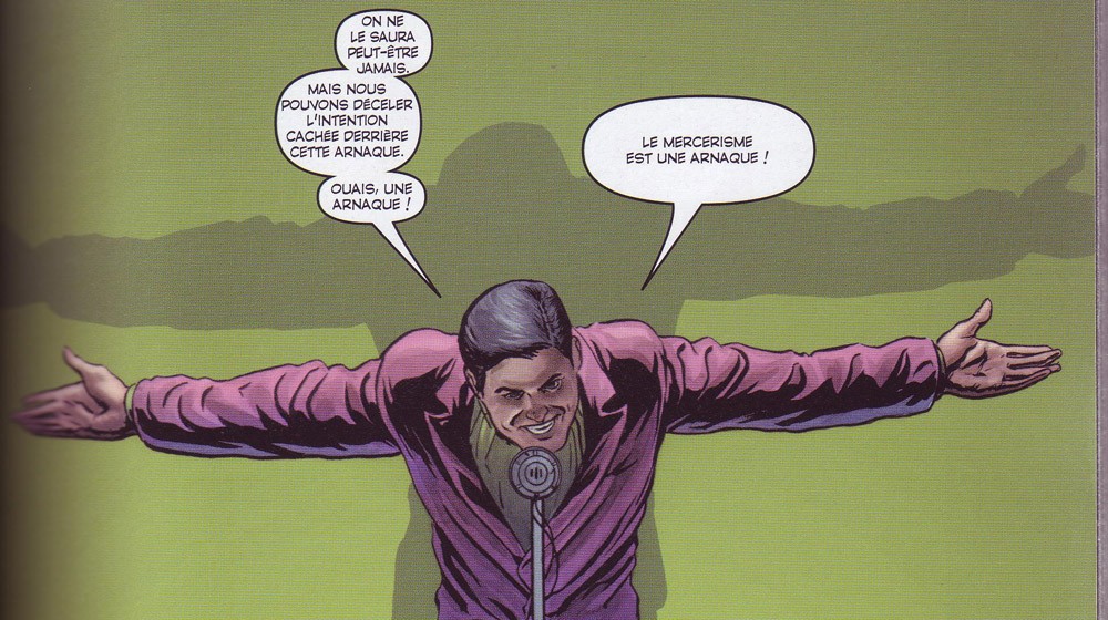 Je vous rappelle que la vie animale a pratiquement disparue de la terre, et trouver un animal réel comme une araignée est en soit une immense chance. Pendant que Pris prend un malin plaisir à mutiler l’araignée, Irmgard et Roy Baty sont absorbés par l’émission de Buster Sympa annonçant un scoop inattendu pour tout humain : Le mercerisme serait en fait un gigantesque mensonge. Les androïdes jubilent pendant que Rick rentre dans le bâtiment pour les reformer.