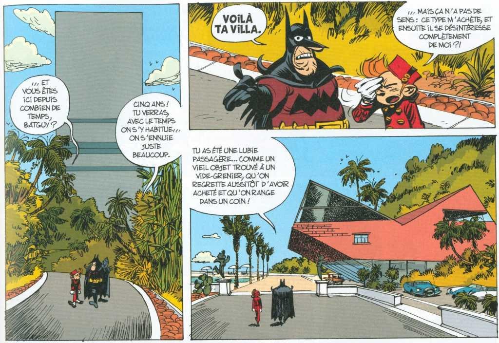 Ici, on revient plus vers les fondamentaux (retour à Champignac !) et avec un vrai bon sujet de départ. Le journal Spirou est en difficulté financière et racheté par un financier malveillant. Spirou en est réduit à vivre dans un paradis tropical (et fiscal ?) à rien faire comme une vedette vieillissante, comme un « has been ».Je ne vous parlerai pas de sociétés « off-shore » aux Iles Vierges, ni de compte en Suisse ou au Luxembourg mais on n’en est pas loin…Comme quoi parfois la réalité n’est pas très loin de la fiction. Spirou est dans de mauvais draps alors que Fantasio n’a pas vu arriver les gros problèmes, occupé à relancer le journal de Spirou. Le scénario tient la route et est enlevé. Heureusement, les bons sentiments finiront par triompher. Je me suis réconcilié avec la série. J’espère que les auteurs sont repartis vers le haut du panier au niveau scénaristique.