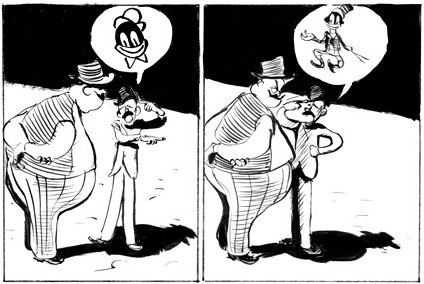 Grâce à un dessin très fluide et tout en mouvement et expressions, Duchazeau peut se permettre une narration souvent muette, parfois rehaussée de bulles dessinées. Ces bulles dessinées qui tombent comme un cheveu sur la soupe sont un peu déroutantes et donnent l’impression de faire l’économie d’un dialogue. L’approche est néanmoins originale et certaines séquences sont assez bien vues.