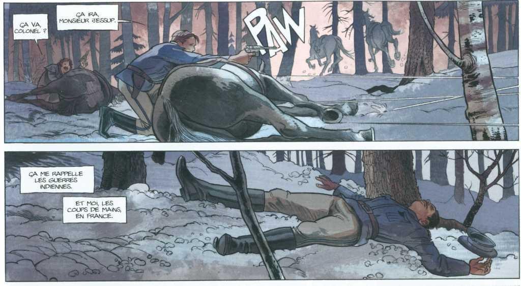 Ce qui frappe en premier lieu en ouvrant ce tome 3, c’est la colorisation nettement plus lumineuse que les albums précédents. Il faut dire aussi que notre héros arrive à Perpignan synonyme de soleil et de clarté. Sinon, le dessin est fidèle à lui-même avec toujours cette belle mise en page moderne. On a aussi toujours droit à une convaincante immersion d’époque avec notamment cette belle double plage traditionnelle détaillée et envoutante.
