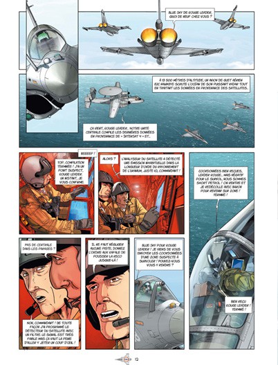 J’espère que ce personnage féminin ne se cantonnera pas à un rôle de faire valoir. Et à ce propos, j’ose croire que les auteurs n’ont pas intégré une femme à leur trio de héros uniquement parce que « aujourd’hui faire une BD sans un personnage féminin c’est juste pas possible », mais bien parce que ça fait tout simplement plus de 20 ans qu’il y a des femmes dans la Marine Nationale, y compris dans l’aéronavale. Même s’il est vrai que la majorité des pilotes de chasse sont des hommes.
