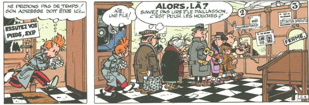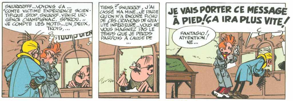 L’histoire en elle-même est un petit bijou. Scénarisé par Greg, on voit directement que Franquin y met son grain de sel, dessine les personnages avec verve, fait passer de façon extraordinaire des ambiances terribles. Il suffit de voir les scènes de nuit avec le comte de Champignac ou la scène mémorable de Spirou qui va envoyer un télégramme très urgent à la poste. Le guichetier et son guichet : tout un programme! C’est savoureux, hilarant, criant de vérité. Les auteurs sont au top de leur forme et cela se voit, se lit directement.