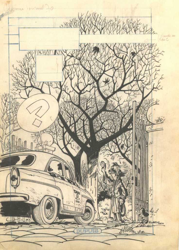 Mon avis : Spirou a 75 ans! Dupuis continue à sortir de ses tiroirs des œuvres de Franquin moins connues ou pas publiées. Dans le cas présent, La peur au bout du fil est une histoire courte (16 planches) parue en 1959 dans le journal de Spirou. Cette histoire paraîtra dans l’album « Le voyageur du Mésozoïque » et ne fera plus que treize planches car les planches sont remontées bande par bande. Lors de la publication dans le journal, il y avait toujours deux planches par semaine, une première, placée en couverture, avec le titre « Spirou » plus 3 bandes et une seconde comportant 4 bandes…Chaque planche devait se terminer par une case qui devait susciter la suite de la lecture…Avec le remontage et la suppression des « titres », cet élément de « suspens » n’est plus d’actualité dans l’album…