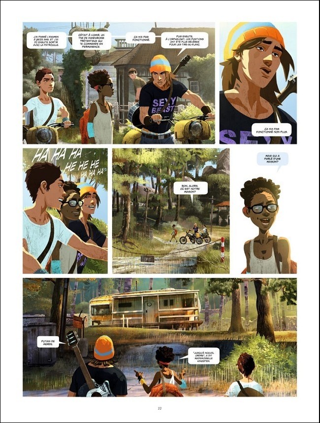Mais que nenni ! Il s’agit d’un récit post apocalyptique se focalisant sur la survie d’une petite communauté de Fort Apache. Ce qui frappe en premier dans Gung Ho, c’est la qualité du dessin de Von Kummant. Un trait élégant (style sans encrage) accompagné de décors soignés et détaillés jouxtés d’une colorisation lumineuse. Ensuite, on prend le temps de connaitre tout ce petit monde, de comprendre leurs règles et leurs problèmes. Une menace diffuse semble roder autour d’eux mais elle va finir par infiltrer les lieux. Grâce à cette structure, les personnages deviennent vite attachants malgré leurs défauts et la lecture se fait très agréablement avec une tension qui monte graduellement. Bref, on en redemande. Normalement, on devrait être servi car 5 tomes de 80 pages sont annoncés. Il existe aussi les formats de luxe (1/2 album) pour les plus collectionneurs d’entre nous.