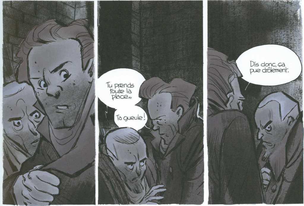 Au niveau du dessin, je reste sur mon avis du premier tome. Le graphisme a un certain style mais c’est fort dépouillé, trop peut-être. Les décors sont plus stylisés que détaillés. Cela fait un peu « pauvre » par moment. C’est comme tourner un film à petit budget dans des décors en carton pâte.