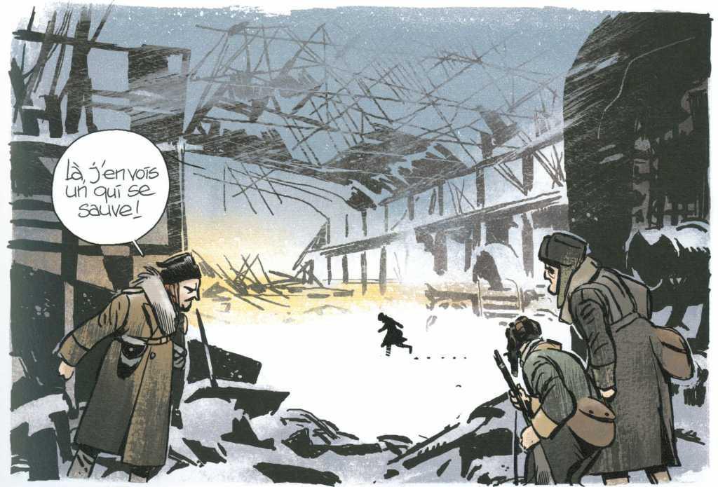 Mon avis : Voilà deux longues années que le premier tome était sorti en librairie. Cela fait long, trop long. Il a donc fallu se remémorer l’histoire et ses méandres scénaristiques pour se remettre d’aplomb dans le sens de la lecture…Ce n’est pas spécialement un bon indice de lecture ! Si le sujet au départ en lui-même est particulier, sort de l’ordinaire et de l’image que l’on a de la bataille de Stalingrad, il faut bien reconnaître qu’au final, la réalisation est un peu décevante, voire poussive. J’avais déjà eu des réticences après le tome 1, cela ne s’est pas amélioré à la lecture du second tome. L’histoire repose, dans cet opus, sur une quête pour retrouver des bobines perdues lors du tournage du film, tourné dans cet univers hostile, sans foi, ni loi (ou si peu) qu’est Stalingrad.